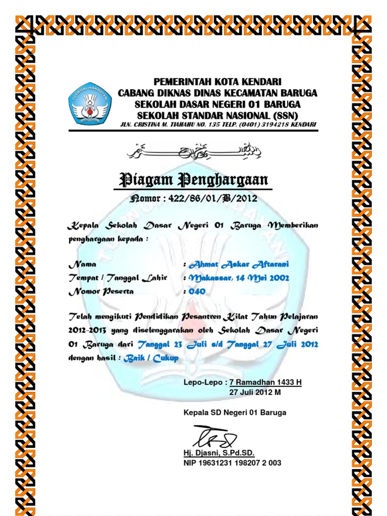 Contoh piagam pesantren kilat ramadhan. We did not find results for: Check spelling or type a new query. Maybe you would like to learn more about one of these?